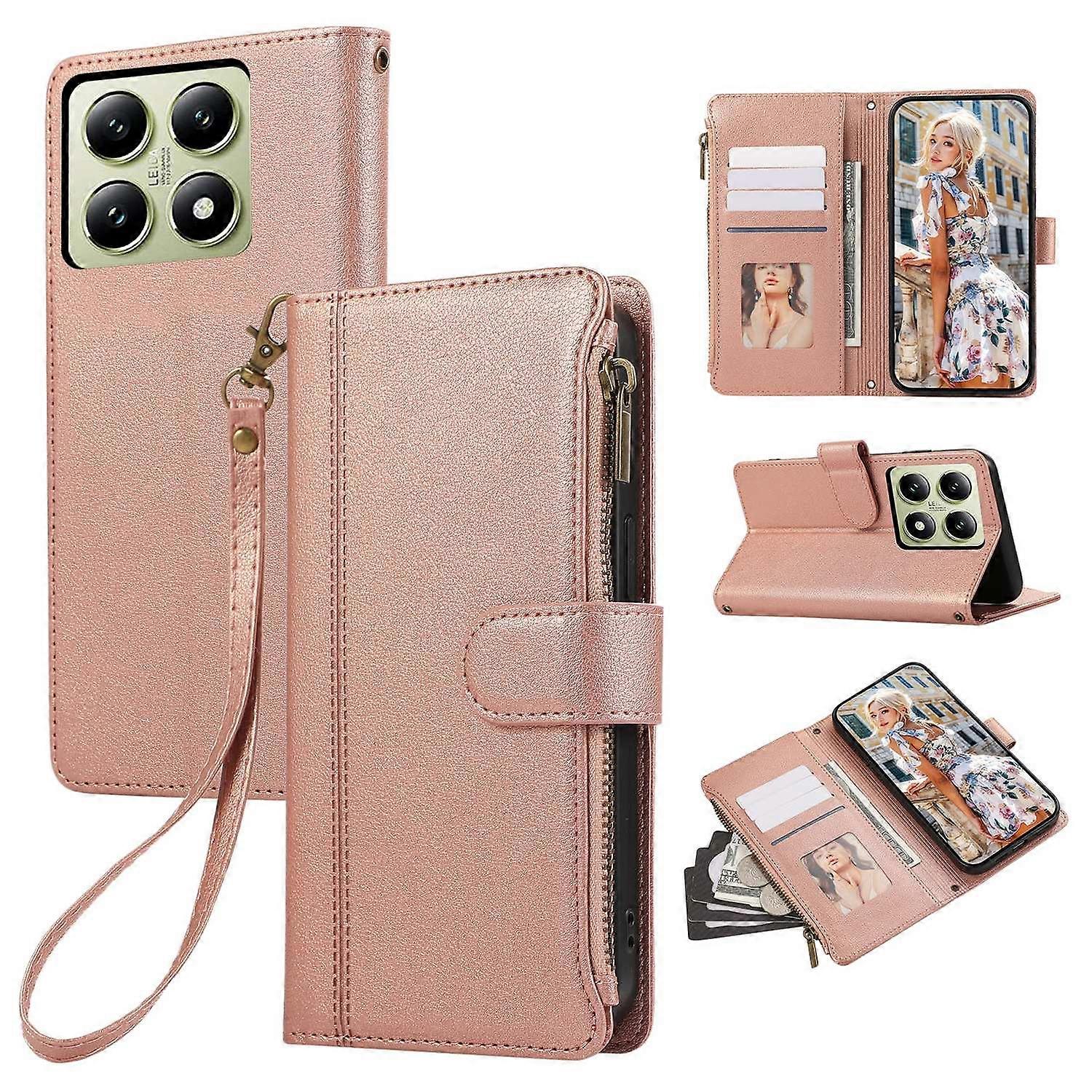 For Xiaomi 14T Case Multi Card Slots Zipper Leather Phone Cover with Wrist Strap