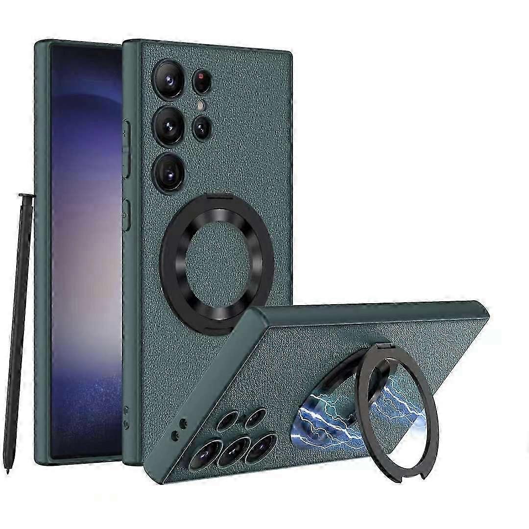 For Samsung Galaxy S24 Magnetic Case, Lychee Patterned Carbon Fiber Case with Magnetic Kickstand, Full Camera Protection Military Drop Back Cover