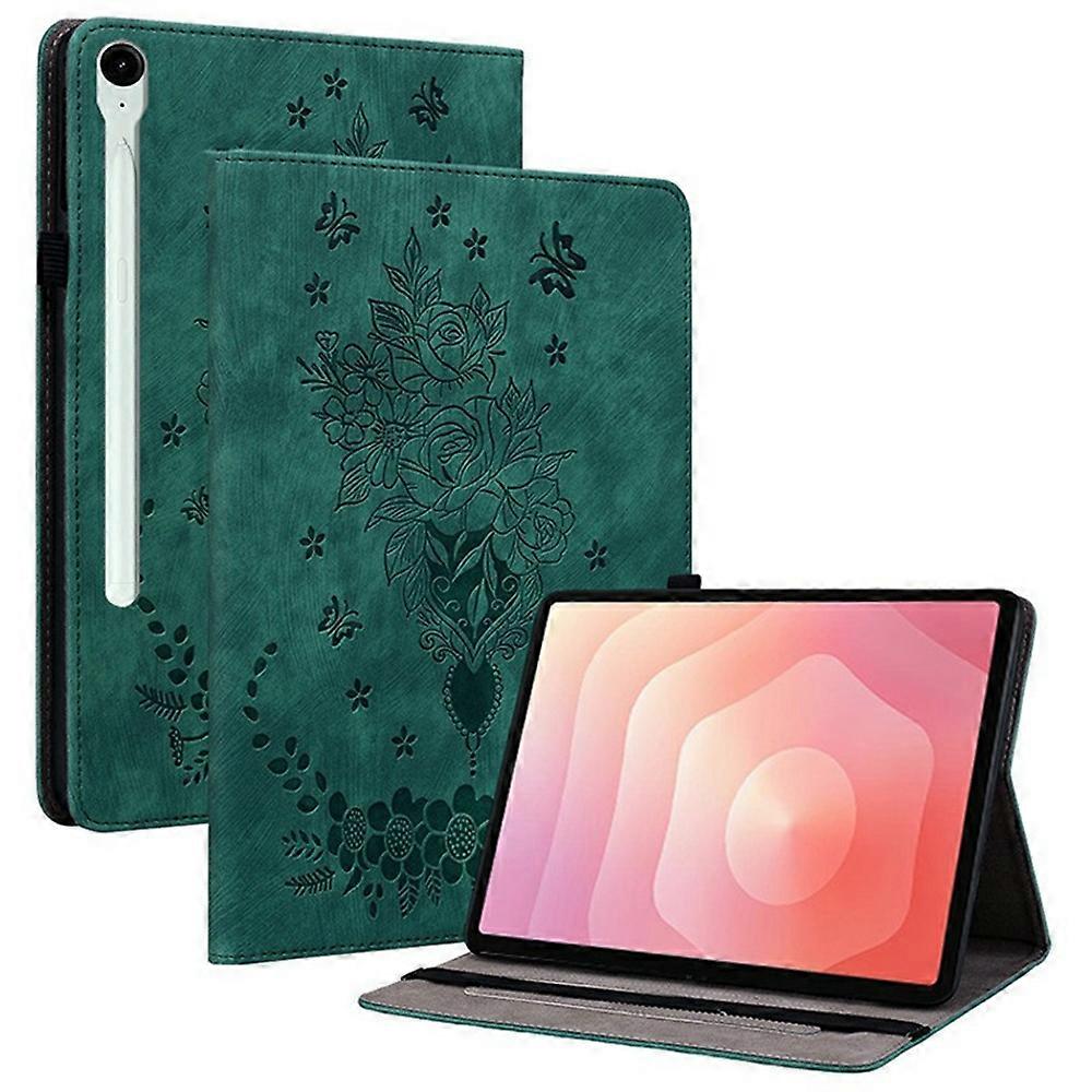 For Samsung Galaxy Tab S11 Case Card Holder Anti-Scratch Leather Cover Rose Flower Imprint