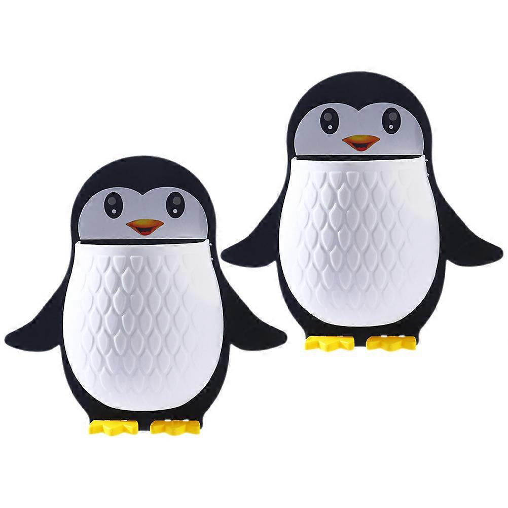 Cute Penguin Shaped Remote Control Holder for Wall Mount Black Plastic Home Organization 2pcs