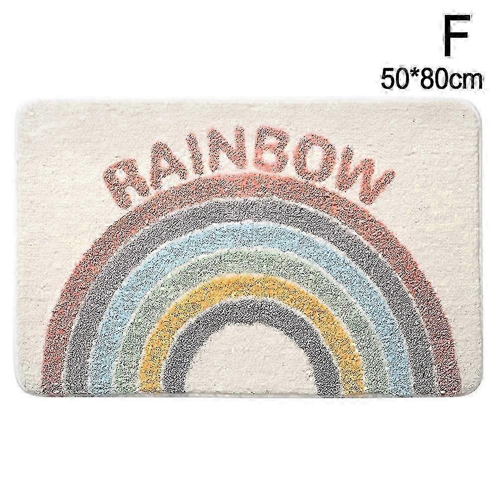 Material: Polyester fiberSize:40X60 cm /15.75X23.62 inches ,50X80 cm /19.69 x31.5inchesColor:as picture 1.Vivid design: This floor mat uses a rainbow design, bright colors, giving people a pleasant feeling. The rainbow pattern is deeply loved by children and can create a pleasant playing environment for children. 2.Lovely and simple: The design of the floor mat is simple and lovely, there is no complicated pattern and pattern, only a simple rainbow pattern, giving people a clean and fresh feeling. This design makes the floor mat suitable for a variety of decorative styles of the room, will not be obtrusive. 3.High quality materials: The floor mat is made of high quality materials, very soft and comfortable, giving people a feeling of stepping on the cloud. The material is durable and reliable, easy to clean and maintain, and suitable for long-term use. 4.Strong water absorption and pollution resistance: This mat is made of high-quality absorbent materials that quickly absorb moisture and keep the floor dry. At the same time, it also has excellent anti-contamination function, can prevent liquid penetration, easy to clean and maintain. 5.Multiple uses: This floor mat is not only suitable for stepping on, but can also be used as a seat cushion, a play mat or as a decoration beside the bed. Whether placed in the bedroom, living room or children's room, it can add some energy and color to the space.NOTE1. As we all know ,the different computers display colors differently,the color of the actual item may vary slightly from the following images.2. If you feel difficult to choose the size ,you can feel free to contact mewe will give you some suggestion,but it is for you reference only.Package include: 1 pcs* floor mat<br> Note: Due to the light and screen setting difference, the item's color may be slightly different from the pictures. Please allow slight dimension difference due to different manual measurement. Sold by-Minnanxin
