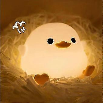 Cute Bean Duck Led Night Light, Rechargeable Cartoon Silicone Bedroom Light, Touch Sensor Timing Bedside Lamp For Kids Gift