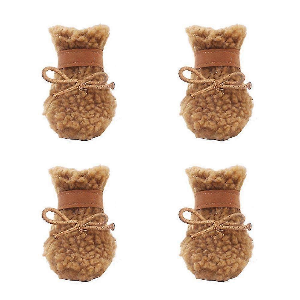 Cute Cartoon Dog Boots Winter Wear Dog Snow Boots Outdoor Snowy Days Pet Footwear 5.5X4.5CM Brown 4Pcs