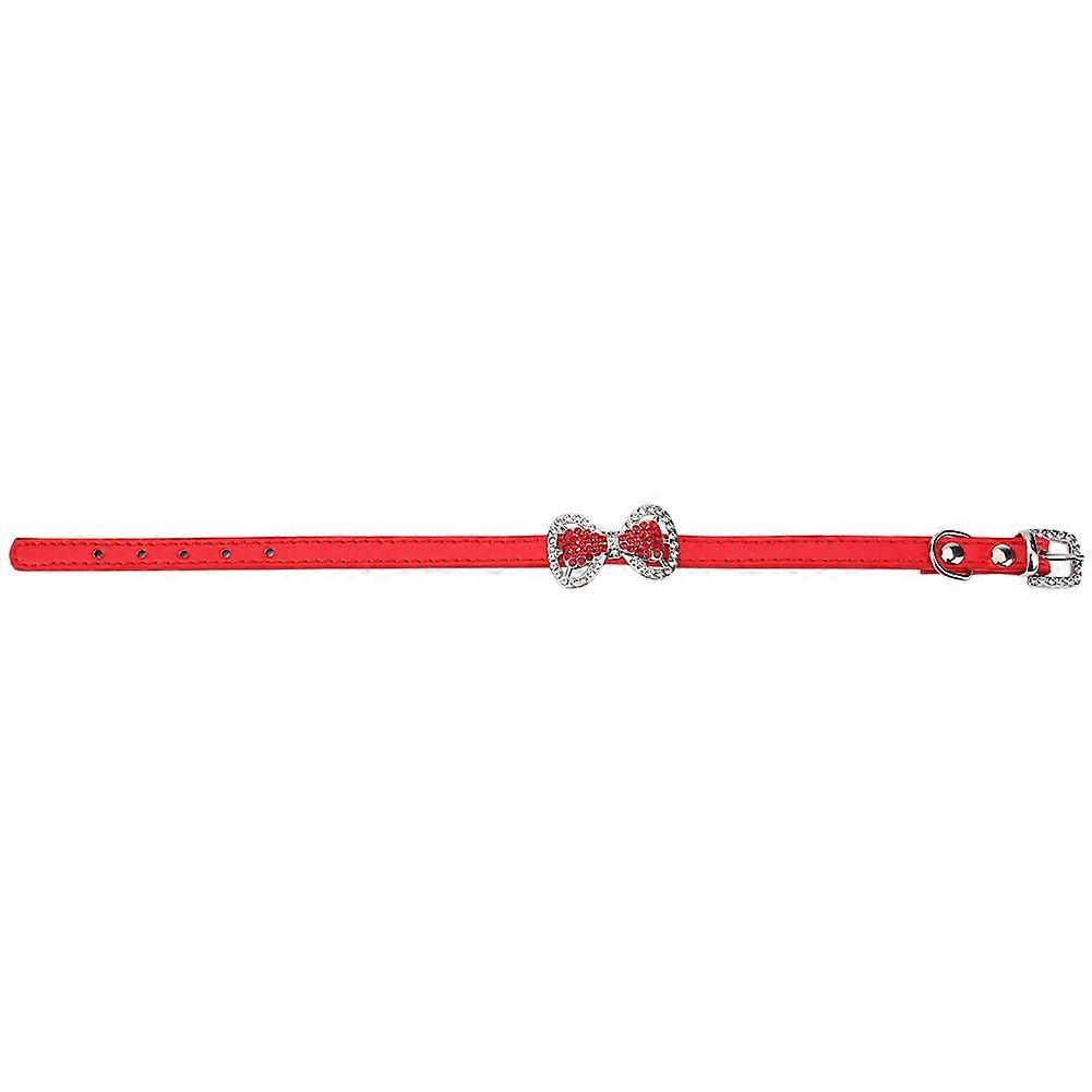 Cute Fashionable PU Leather Rhinestone Bowknot Dog Puppy Cat Necklace Pet Supplies (Red)