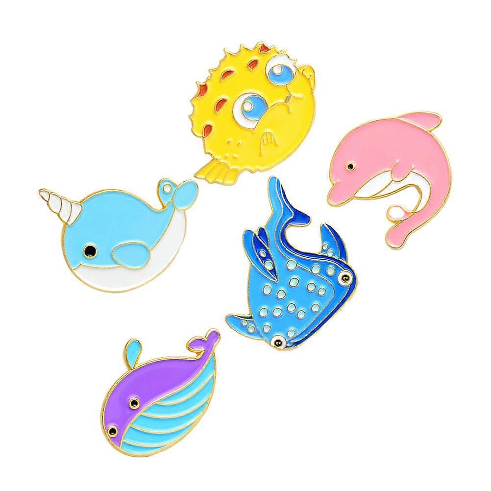 Cute Brooch Marine Life Cartoon Breastpin Fashion Clothes Pin for Kids Adults Random Style 2.5x2.5CM Alloy Decorative 5Pcs