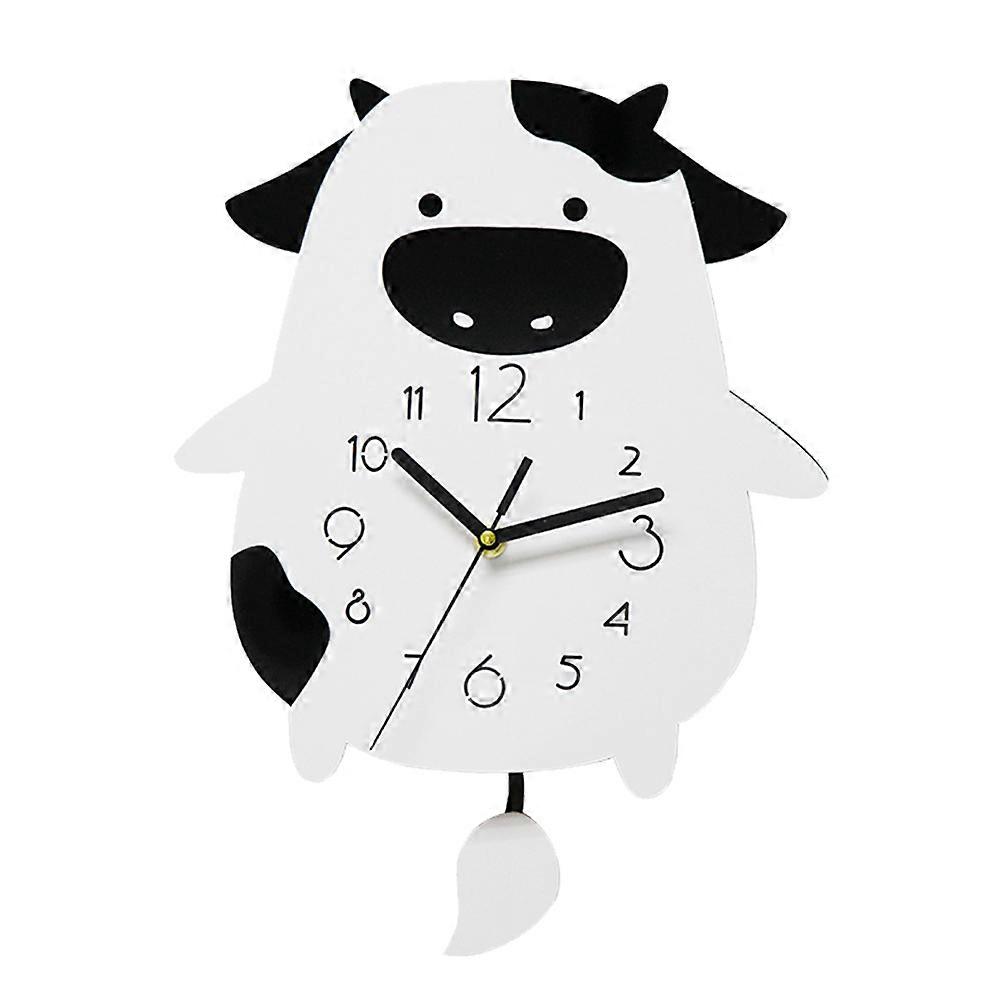 Cute Cow Wall Clock Animal Acrylic Wall Clock Silent Battery Operated Wall Clock With Swing Tail Pendulum For Living Room Bedroom Home Decor
