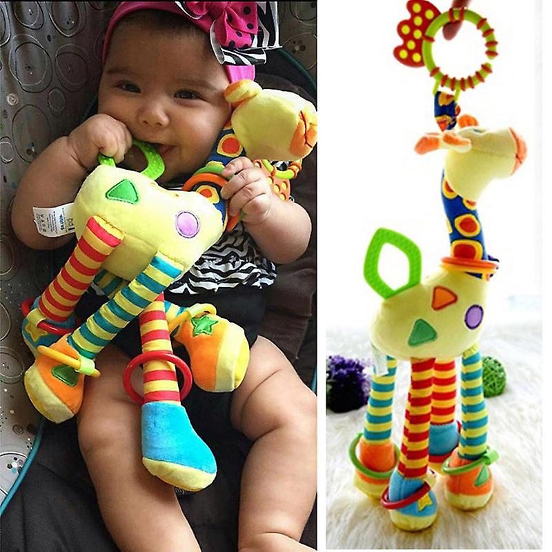 Cute Infant Baby Development Soft Giraffe Animal Handbells Rattles Handle Toys