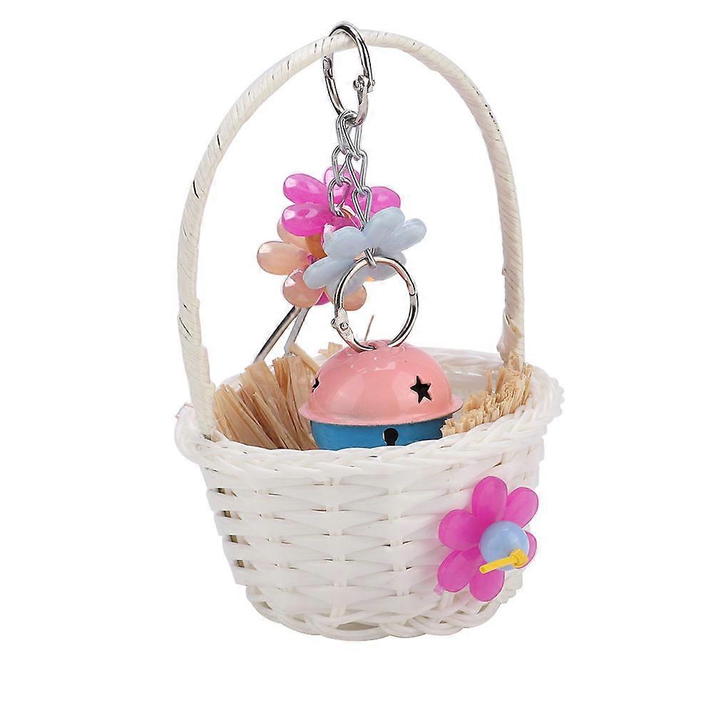 Toy Parrot Swing Basket Bite Chew Birds Cage Decoration with Flower Bell