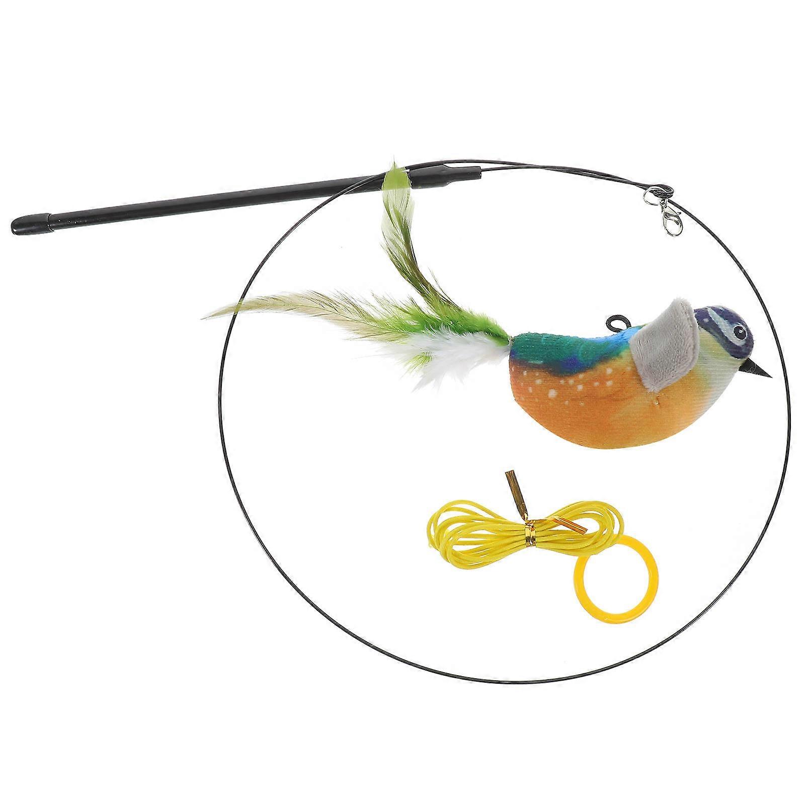 Cat Toy Flying Bird Interactive Kitten Toy Assorted Color 94x0.7cm Lifelike Chirping Bird Sound 1 Set