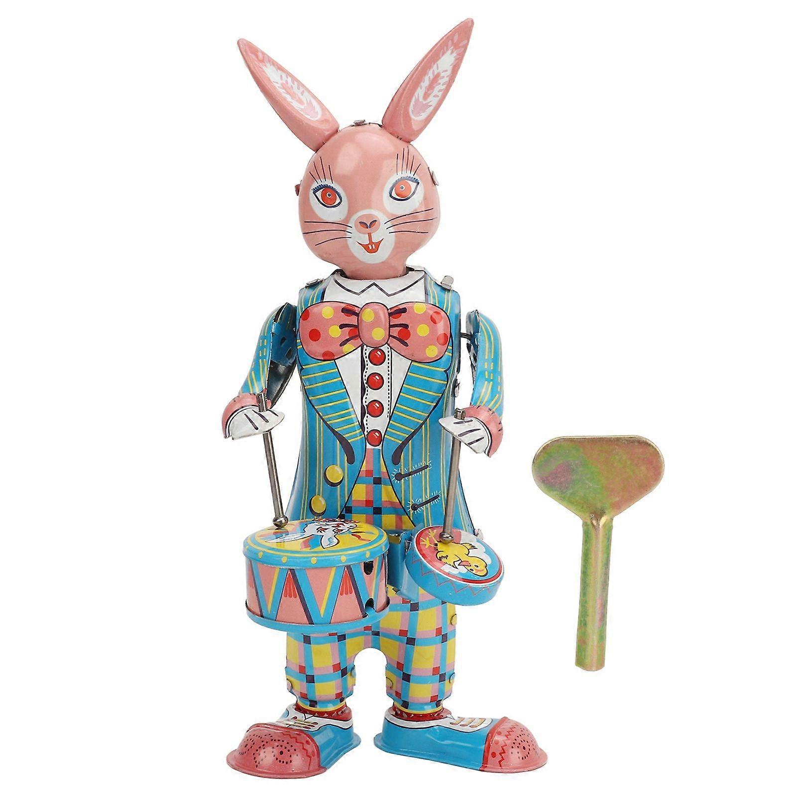 Rabbit Clockwork Toy Retro Metal Swinging Drumming Rabbit Wind Up Toys for Gift Collection Decoration