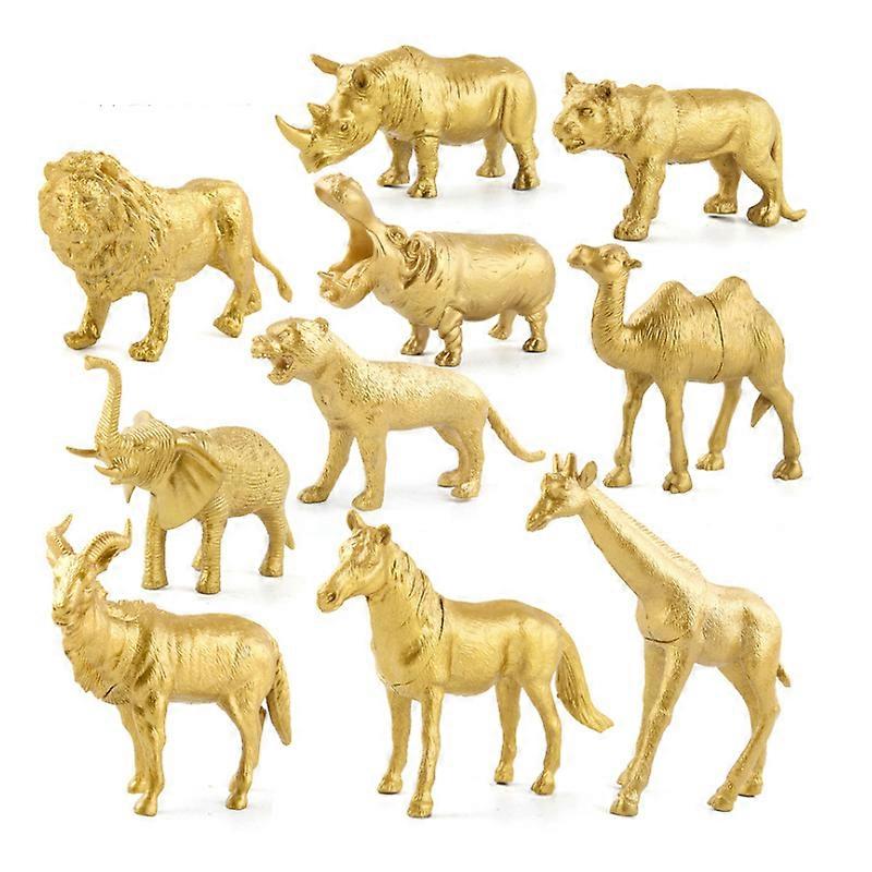 Zoo toy elephant, giraffe, lion and tiger golden animal doll wild jungle animal set 12-piece set