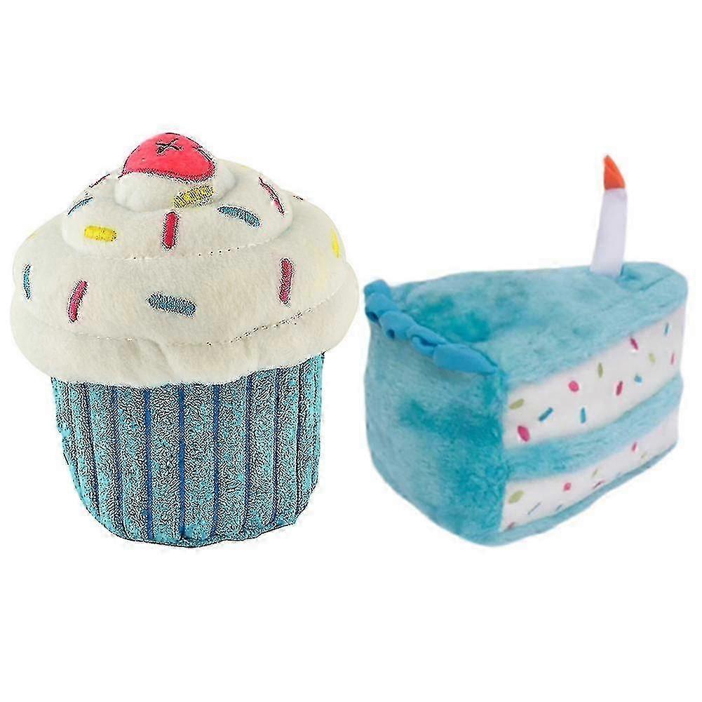 Plush Birthday Cake Toy - Squeaky Chew Play Toy for Dogs & Pets