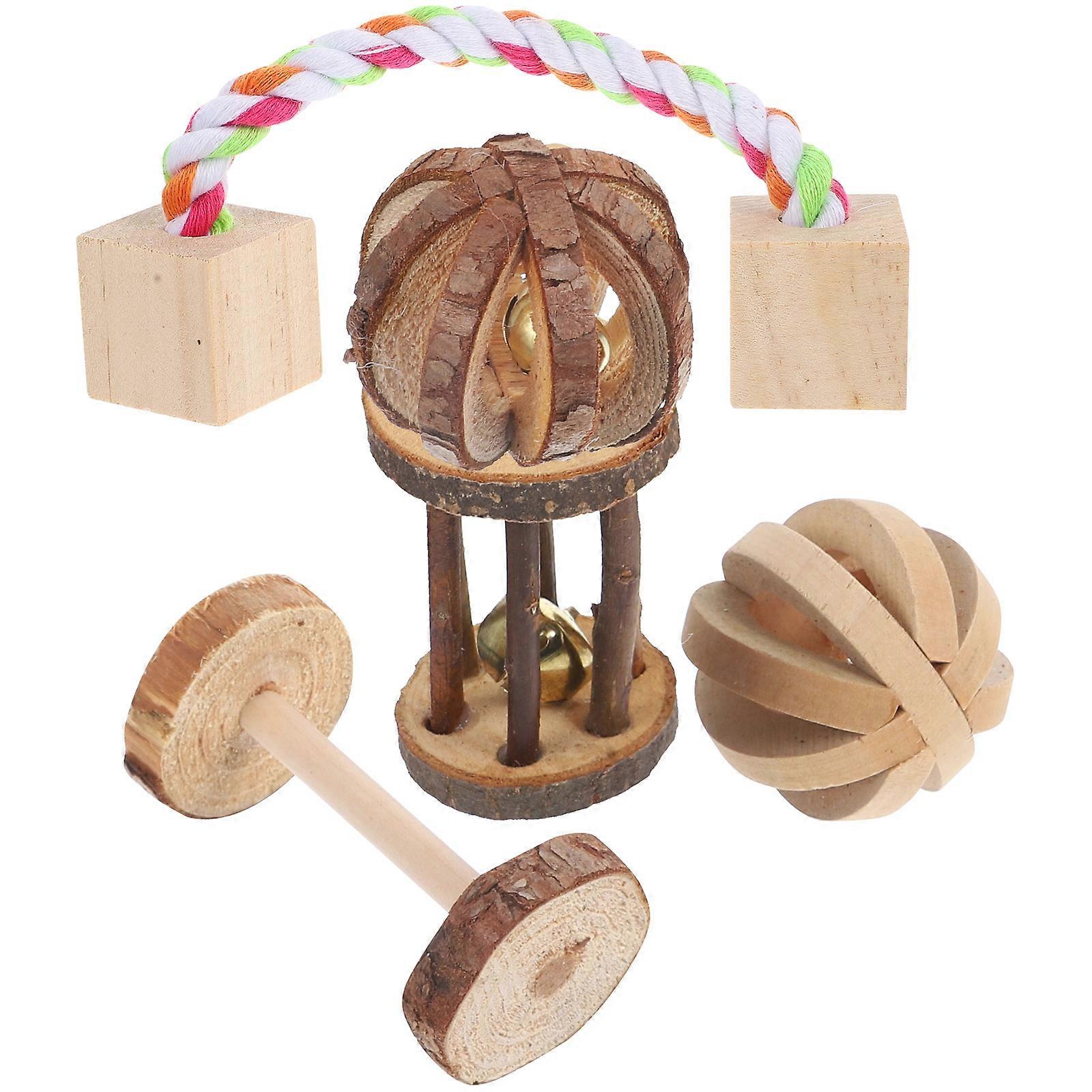 Hamster Chewing Toy Natural Wood Molar Balls For Squirrels Stress Relief 5Pcs