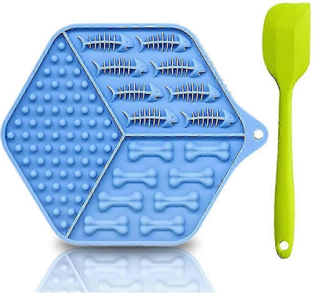 Upgrade Tuff, Multi-Duty: The Upgrade Dog Lick Pad Is Chew-Resistant, Non-Slip Rubber Feet And 100% Dishwasher Safe The Lick Mat For Dogs With 3 Uniquely Textured Quadrants That Are Perfect For More Functions Fish Bone For Chunky Spreadable Treats, Quick Training Rewards The Dots For Runny Foods As A Boredom Buster And Slow Feeder, The Bone Perfect For Small Kibble, Raw Meat Or Fish As A Stress Reliever And Keep Your Dog Or Cat Busy For A While With The Pet Licking Mat Natural Material, Non-Skidding: The Dog Licking Mat Made Of 100% Food-Grade Silicone, Gentle On Your Pets Tongue Bpa Free And Strong Flexibility With Durable Suctions, 61 Suckers Design To Avoid Slipping, Strong Suction Suit For Your Tub, Shower Wall, Tiles Or Other Smooth Surface Or You Can Stick The Dog Bathing Supplies In The Wooden Floor As A Puzzle Slow Eating Bowl Bath Fun And Healthy: During Bathing Or Grooming Time, Just Spread Peanut Butter And Other Snacks On The Lick Mat For Dogs And Stick To The Tile, Bathtub Or Glass, It Can Effectively Distract Your Pets And Make Them Calm Down With The Dog Lick Mat Keep Pets Entertained By Giving Them Their Favorite Spreadable Treats On The Lick Mat Few Calories, Many Minutes Of Healthy Distraction Reduces Anxiety And Destructive: Safe Alternative Food Slow Treat For Your Dog To Lick And The Dog Licking Mat Helps Calm And Soothe Your Pet Through The Promotion Of Licking And Releasing Endorphins Great Dog Slow Feeder Toy For Stressful Times Such Vet Visits, Bath Time, Nail Clipping, Injury Recovery As Well As Thunderstorms And Fireworks Slow Feeder And Training: The Cat Slow Feeder Mat Works With All Manner Of Treats And Foods To Promote Slower Eating, Reduce Bloating And Stop Gulping Allowing Your Pet To Enjoy Just A Small Amount Of Food Over A Longer Period Perfect For Crate Training Too This Is Not A Chew Toy, Please Supervise Your Pet During Use The Dog Lick Pad