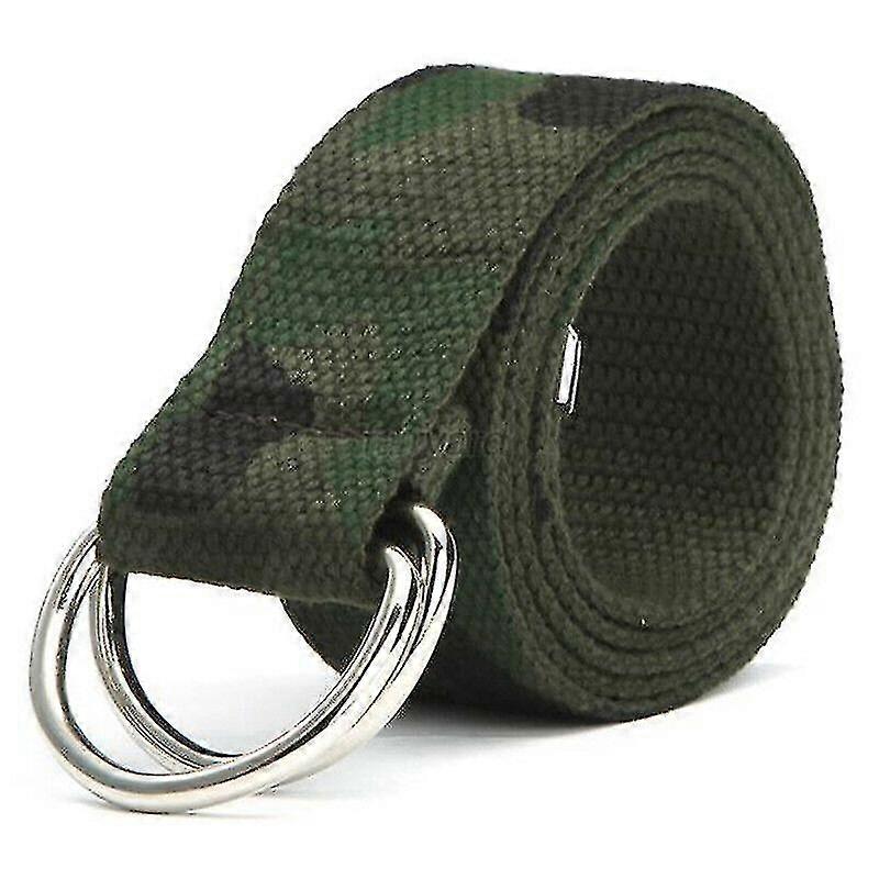 Unisex Webbing Waist Belt Double D Ring Buckle Jeans Waistband