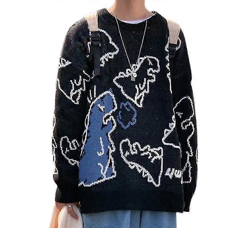 Unisex Cute Dinosaur Print Sweater O-neck Long Sleeve Oversized Knit Jumper Top