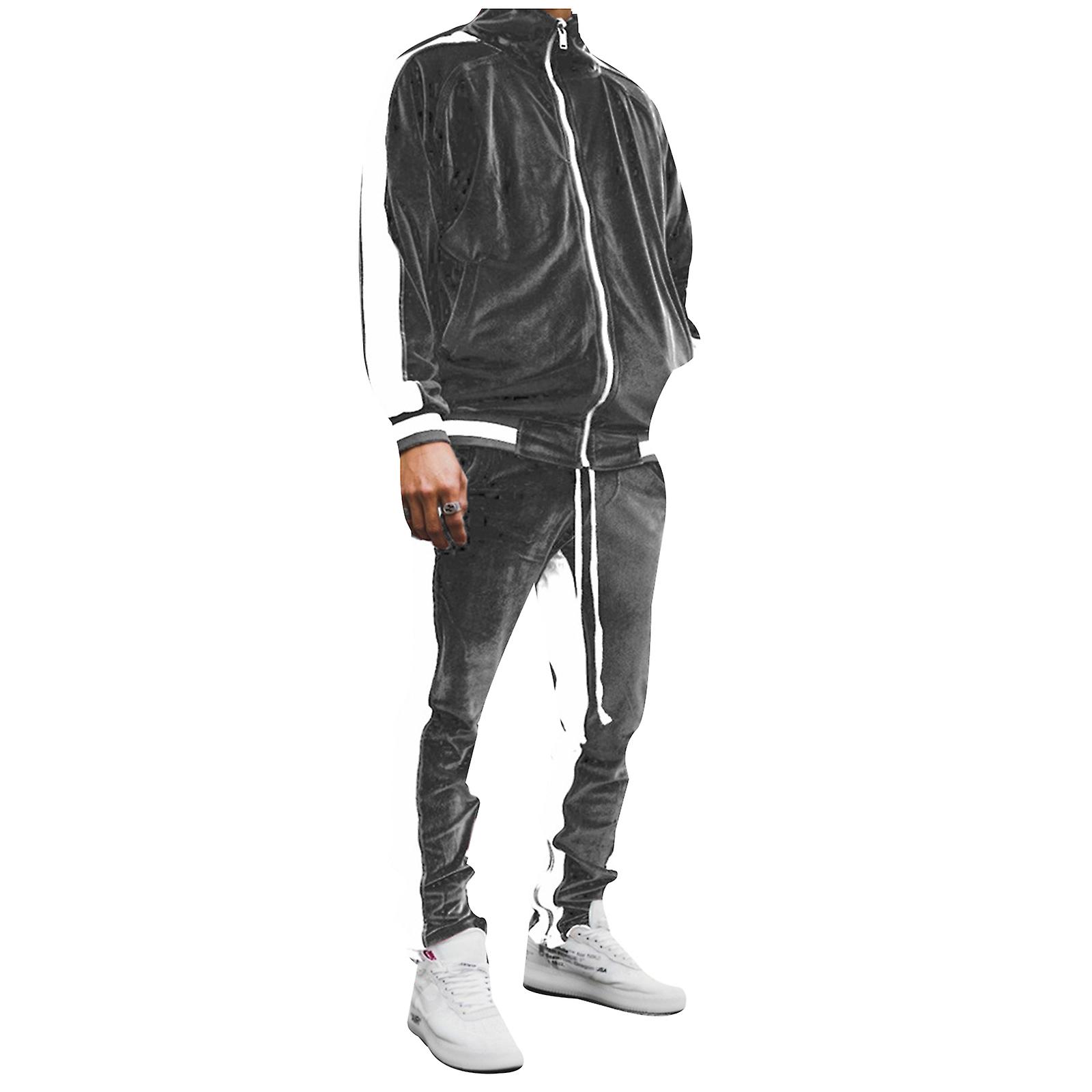 Men's 2 Pieces Full Zip Tracksuits Velvet Sport Suits