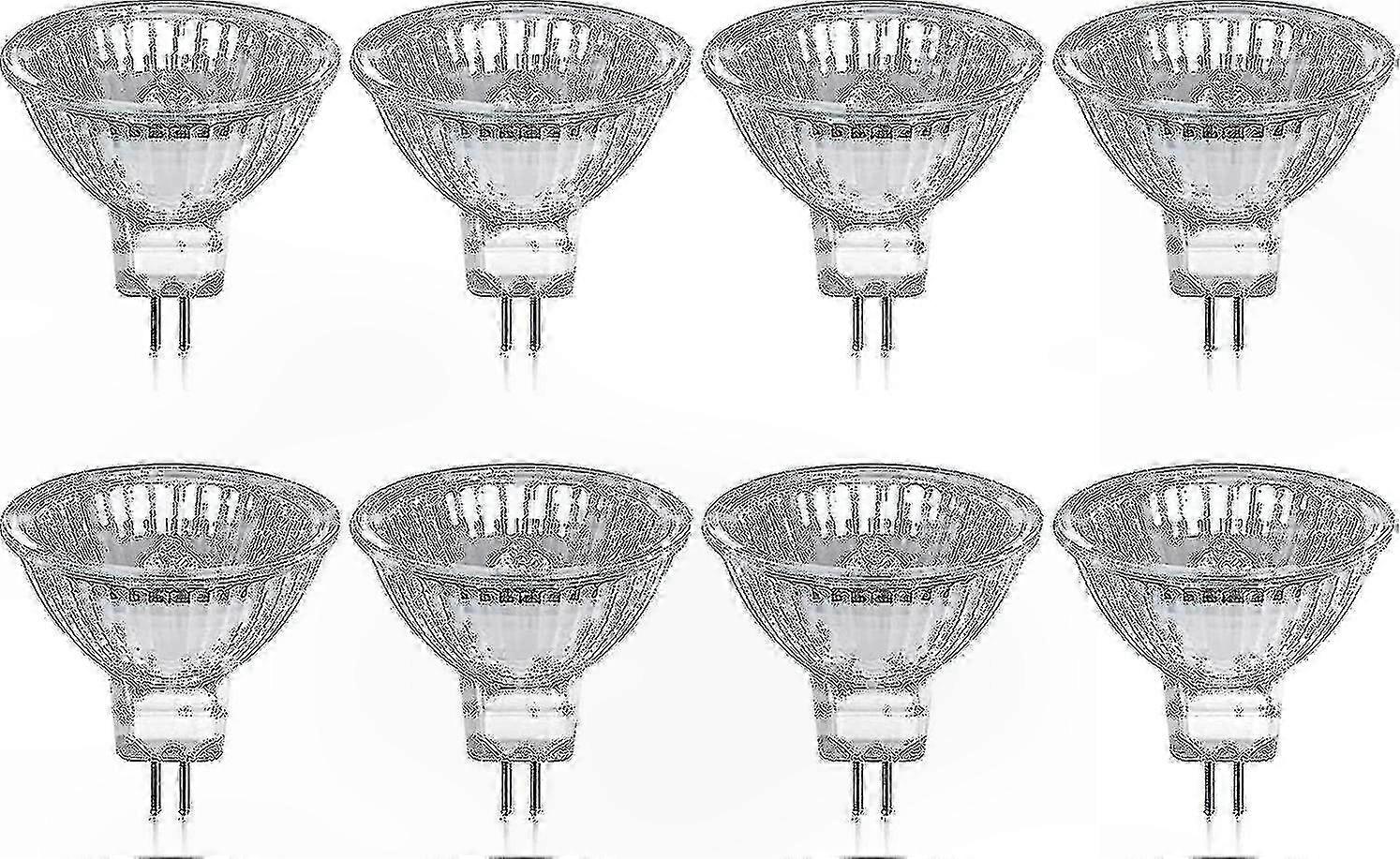 GU5.3 MR16 35W 12V Dimmable Halogen Bulbs, Warm White 2800K, 400 Lumens, Glass Cover, Pack of 8