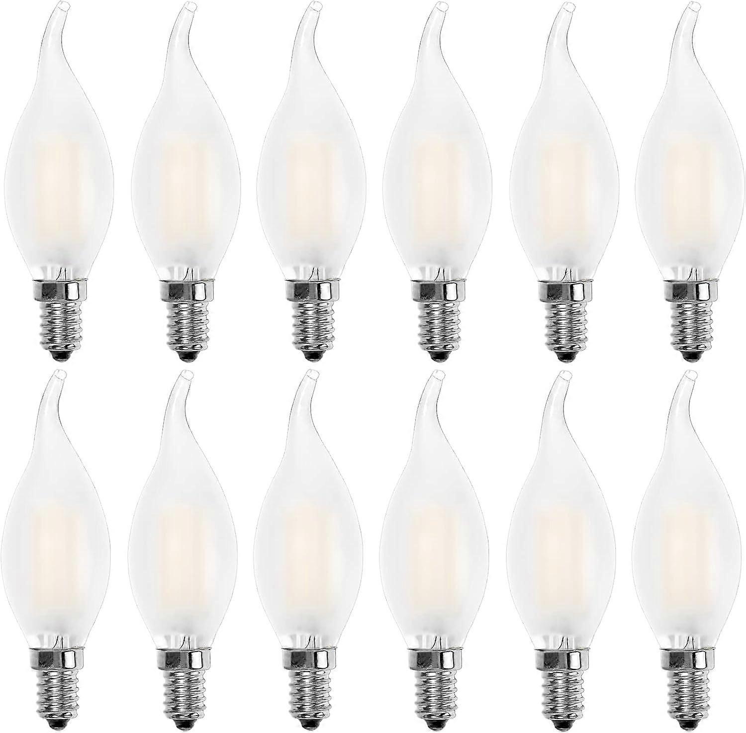 E14 Flame LED Bulb, Candle Shape, Warm White 2700K, 4W Incandescent Equivalent 40W, 400lm, Pack of 12 [Energy Class A+]