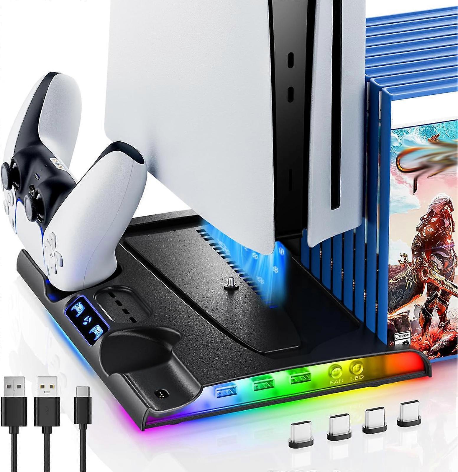 For PS5 Slim Stand Cooling Station with Controller Charging Station for Playsation 5 Slim, PS5 Slim Accessories Kits with Cooling Fan,RGB LED,and Game