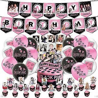 لوازم الحفلات بلاك بينك للجماهير زينة حفلات أعياد الميلاد - 1 لافتة حزب بلاك بينك 18 بالونات حفلة بلاك بينك 17 بلاكبينك كيك توبرز 20 أسود