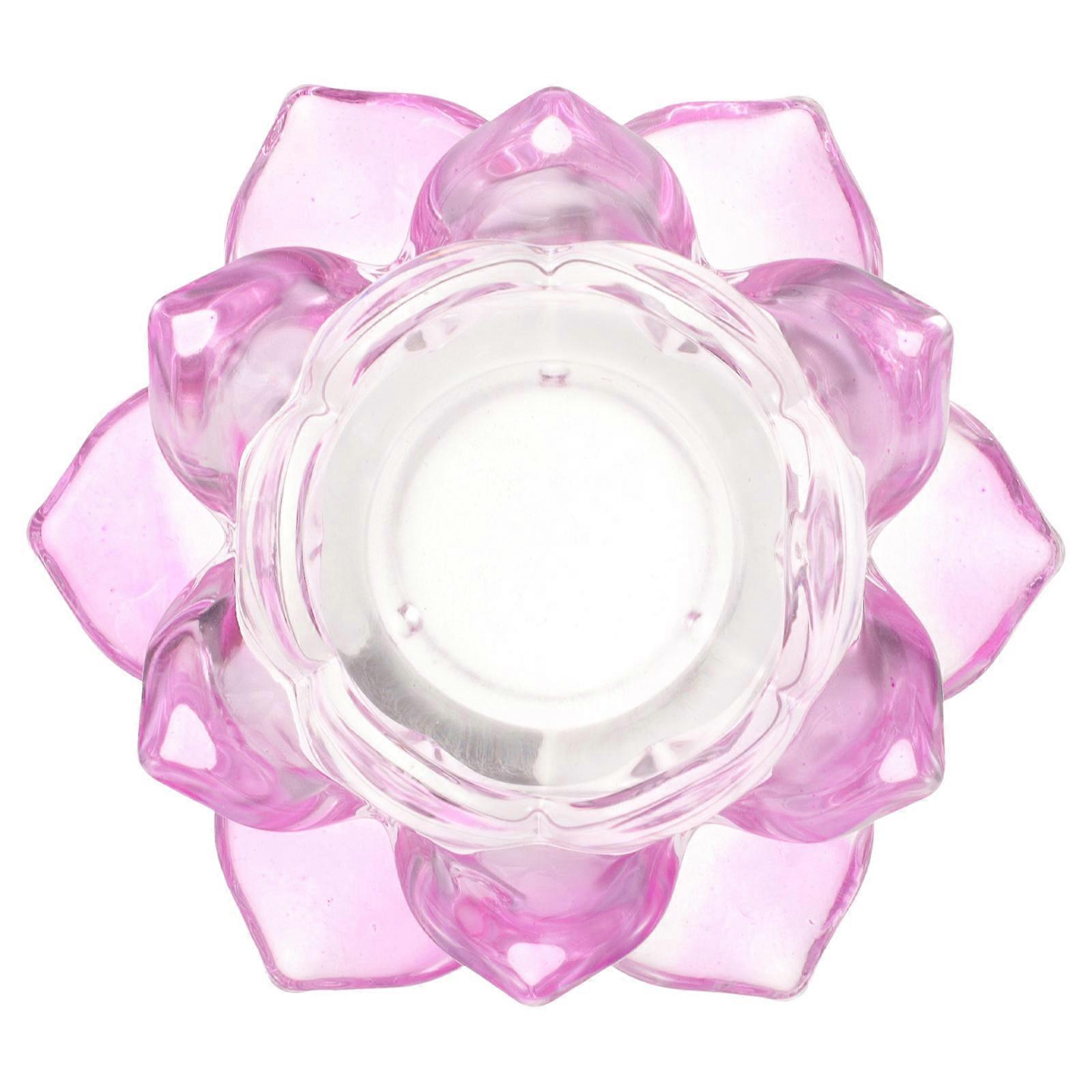Lotus Decor Lotus Shape Buddhism Candle Holder Glass Pink 11.5x11.5cm Buddhist Offering 1Pcs