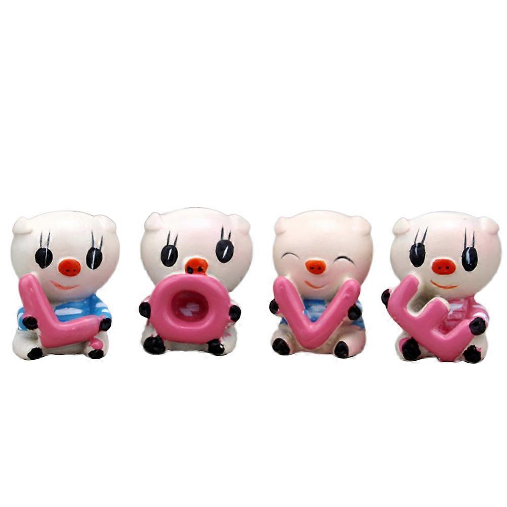 Dashboard Ornament 4Pcs Cute Pigs Shape Suitable For Home Decor Assorted Color Cartoon Style