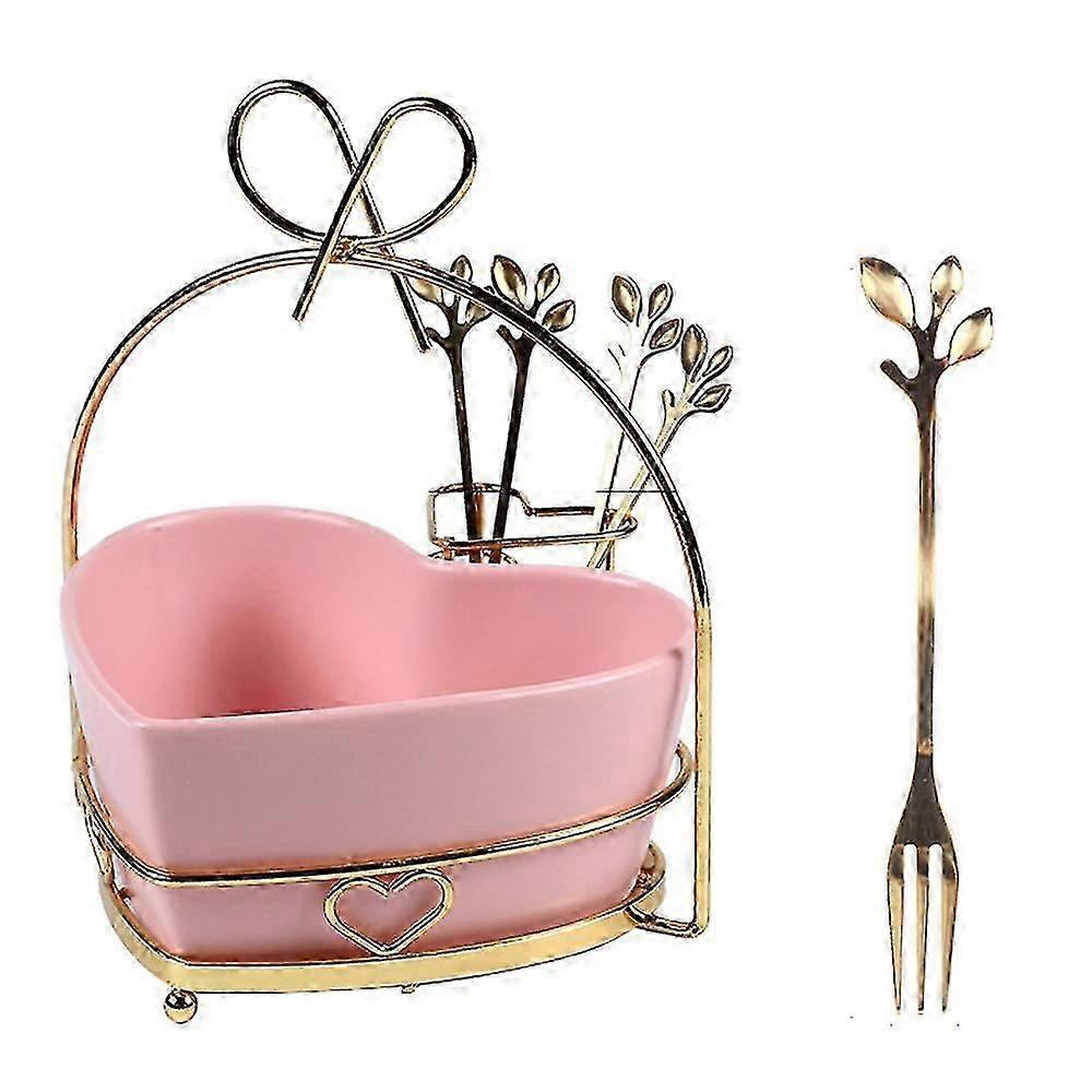 Stylish design, cute heart shaped ceramic fruit plate, with portable gold rack, with forks holder, you can easily use it when eatting small fruit. It's not only a fruit bowl, but also can be a beautiful decoration in your room. Colour: Pink Material: ceramic + iron Package Contents: 1 x shelf 17 x 20cm 4 x forks 12.3cm 1 x fruit plate 14 x 7.5cm Only the above package content, other products are not included. Note: Light and different displays may cause the color of the item in the picture a little different from the real thing. The measurement allowed error is +/- 1-3cm.