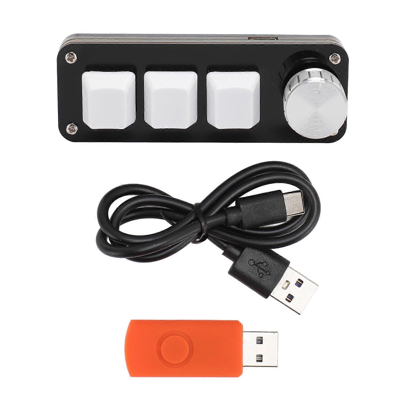 Mini 3 Key Keypad with Knob Custom Programming Hot Swappable Blue Switch One Handed Macro Mechanical Keyboard for Gaming