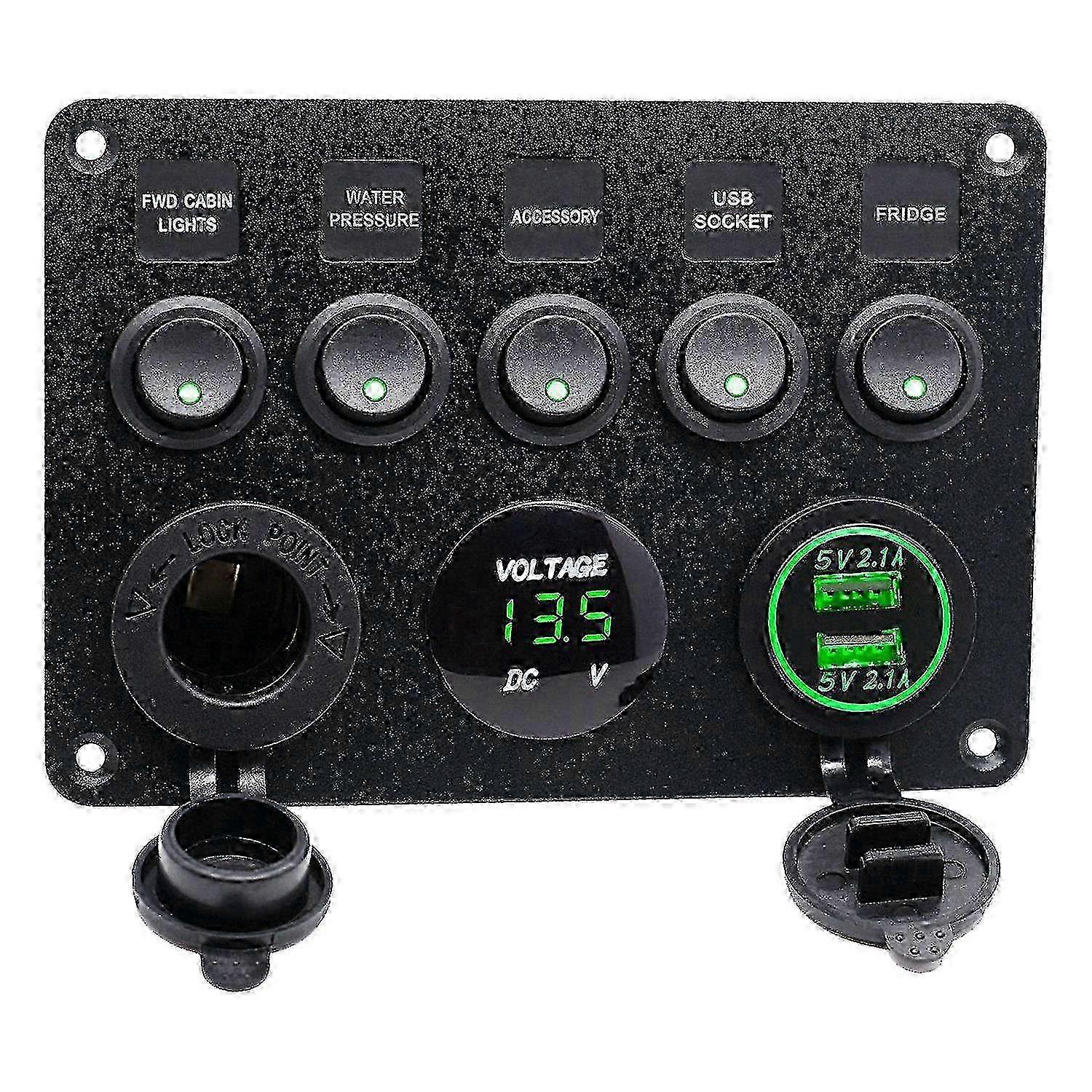 5 Gang 12v/24v Inline-fuse Box Led Switch Panel Dual Usb Car Boat Truck Camper