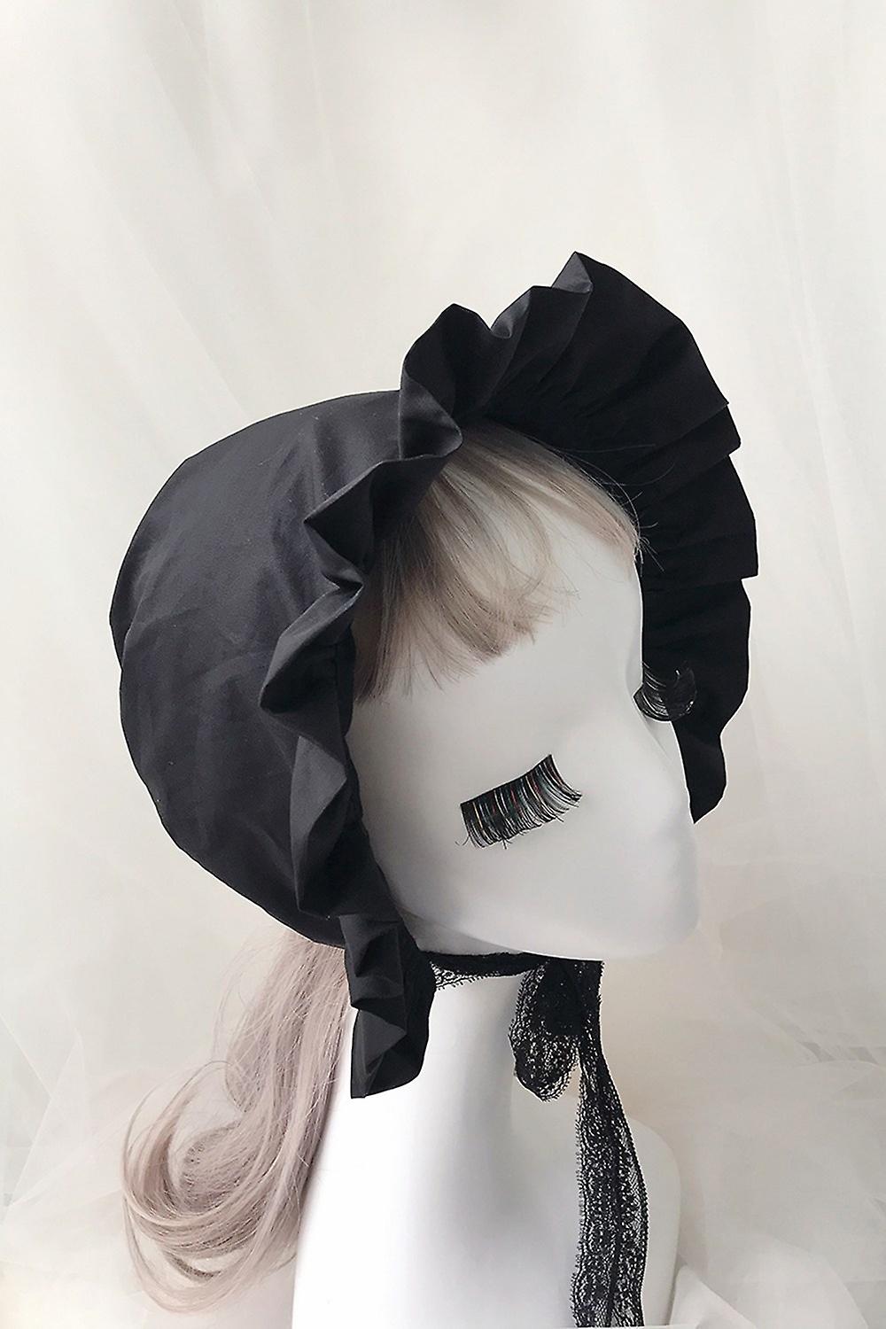 Lolita Ruffled Bonnet Hat 56cm Women Girls Victorian Medieval Vintage Maid Cosplay Lace-up Adjustable Hat Pumpkin Cap