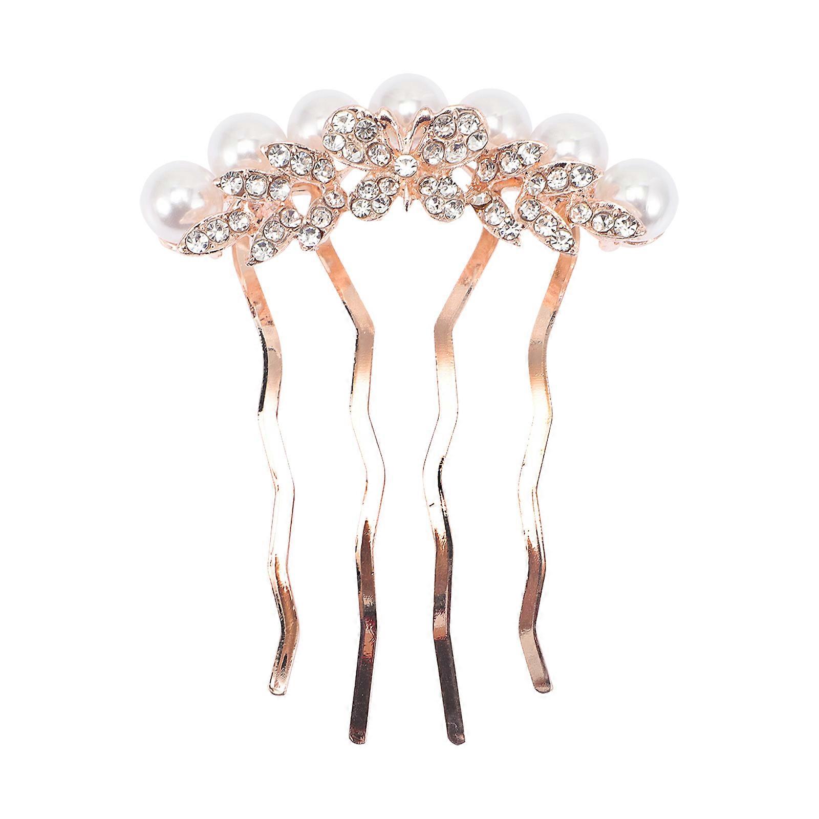 Pearl Rhinestone Hair Comb Side Comb For Engagements Women Headdress 9.5x7.5cm 2Pcs