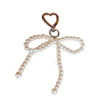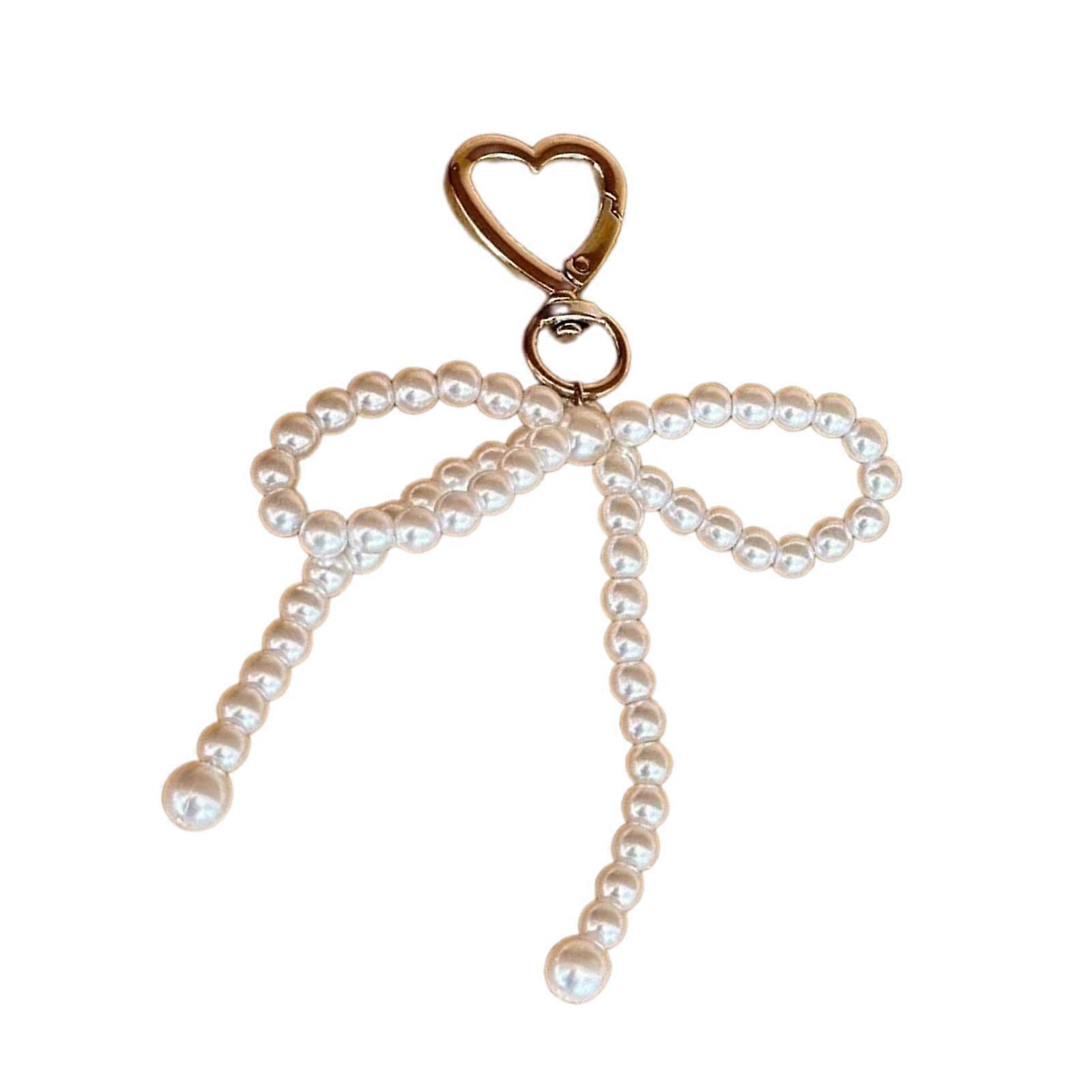 Pearl Bowknot Charm Heart Keychains Sweet Cute Pendant Ornament Keyring Backpack Decoration Jewelry for Women Girls Silver