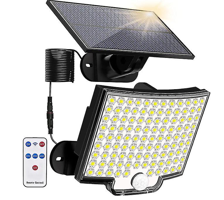 [led/1 Pack/3 Modes] Separate Panel Solar Powered Flood Security Lights With Remote, 16.4ft Cable, Ip65 Waterproof Wall Lights For Garden Garage Yard