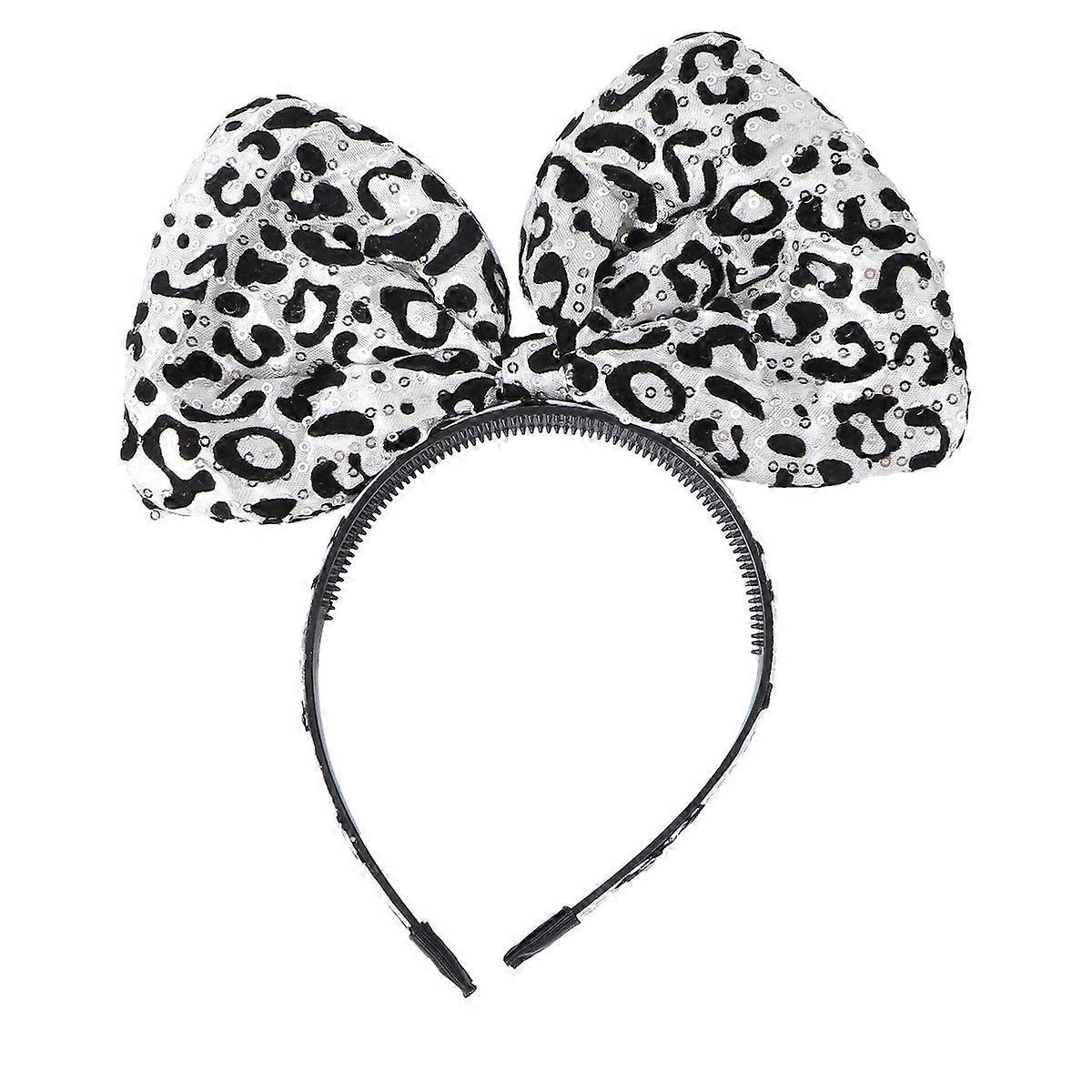 Leopard Hair Hoop Bowknot Headband for Decoration 1Pcs Silver