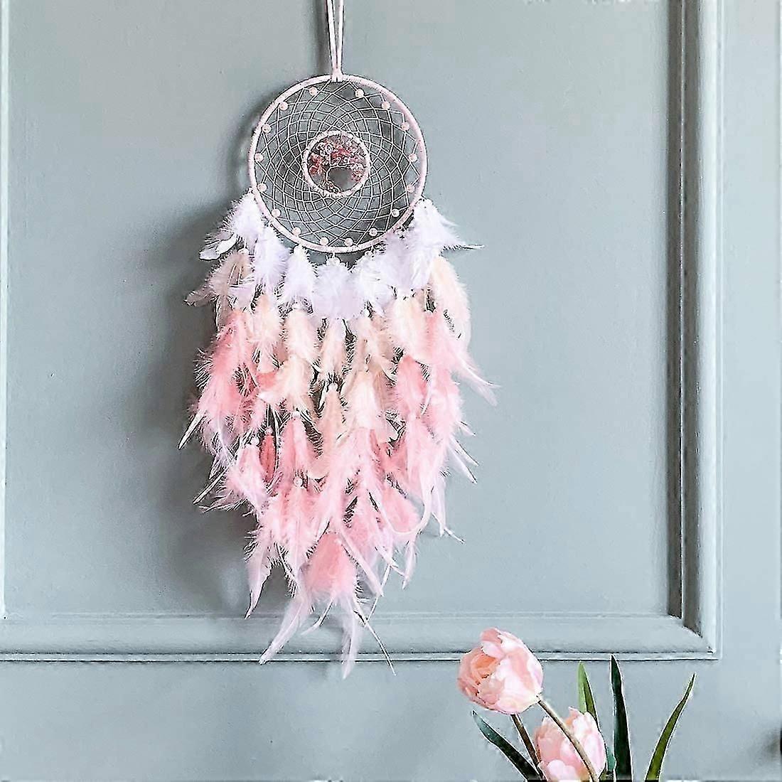 Dream catcher, Pink Dream catcher Tree of Life Wall Decor, with Natural Healing Crystal Stone, Perfect Pink Crystal Handmade Dreamlike Dream Catchers