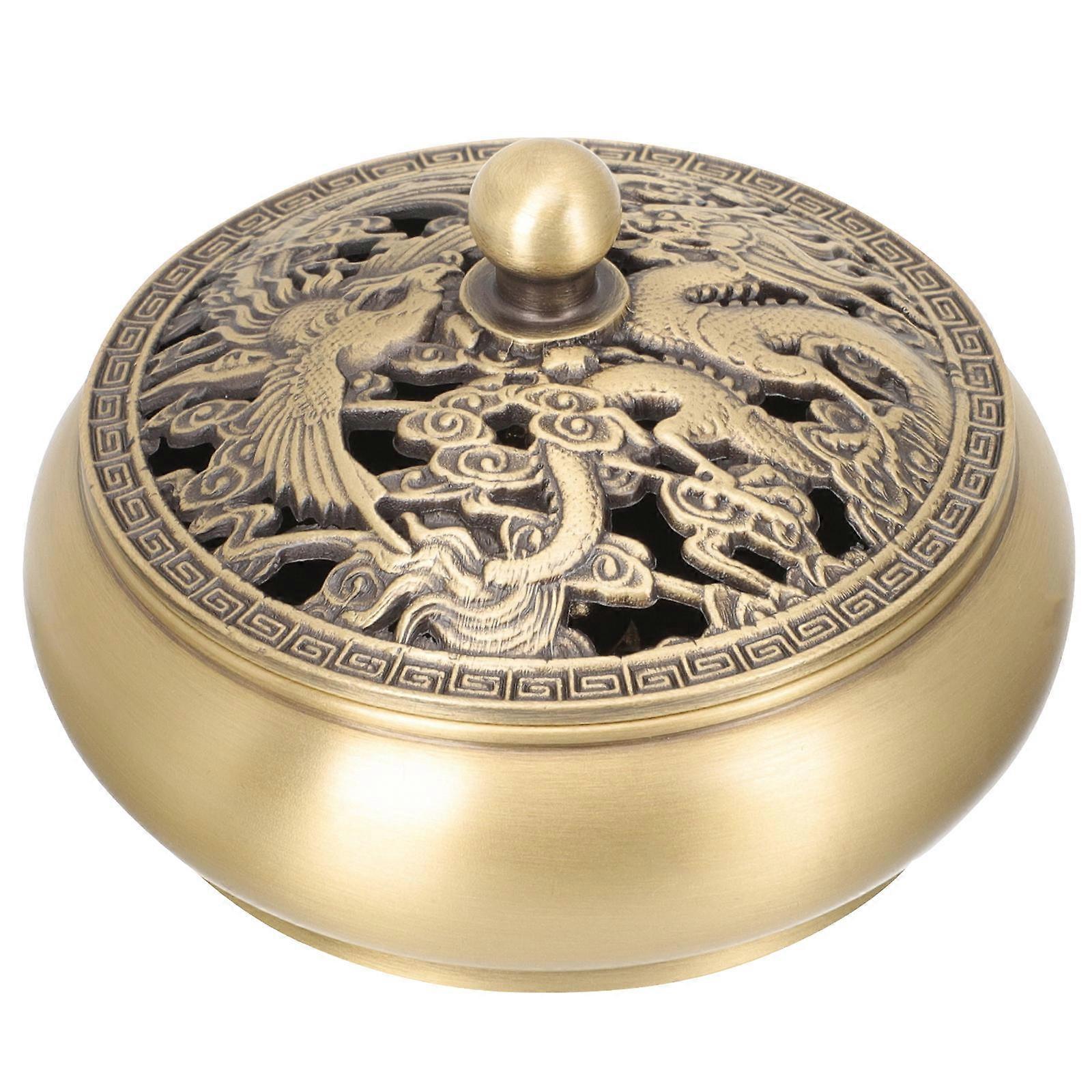 Vintage Brass Incense Burner with Lid – Fireproof Censer for Meditation, Yoga, Office or Home Decor – Compact Chinese Style Ornamental Incense Holder