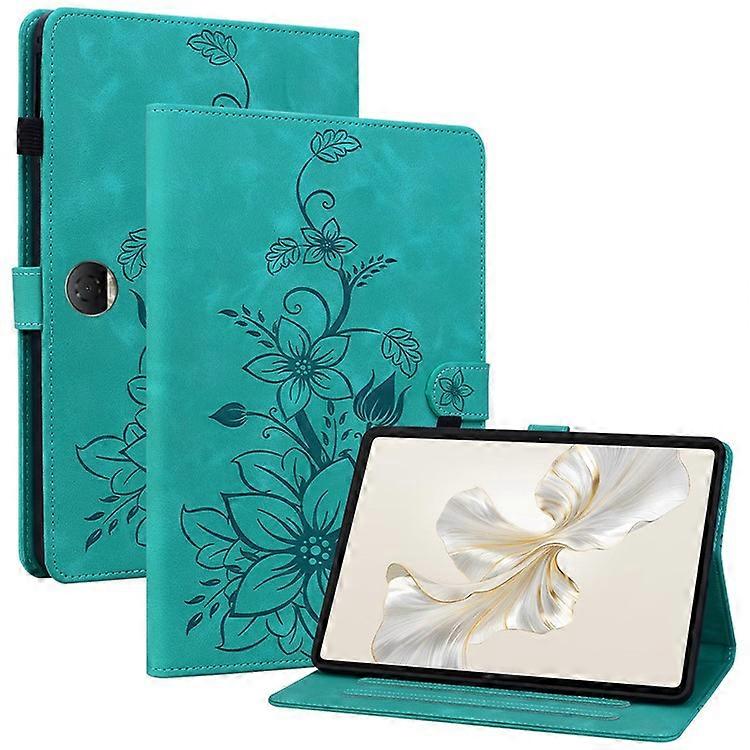 Compatible For Honor Pad 9 Case with Card Slots Lily Flower Imprint Leather Stand Tablet Cover
