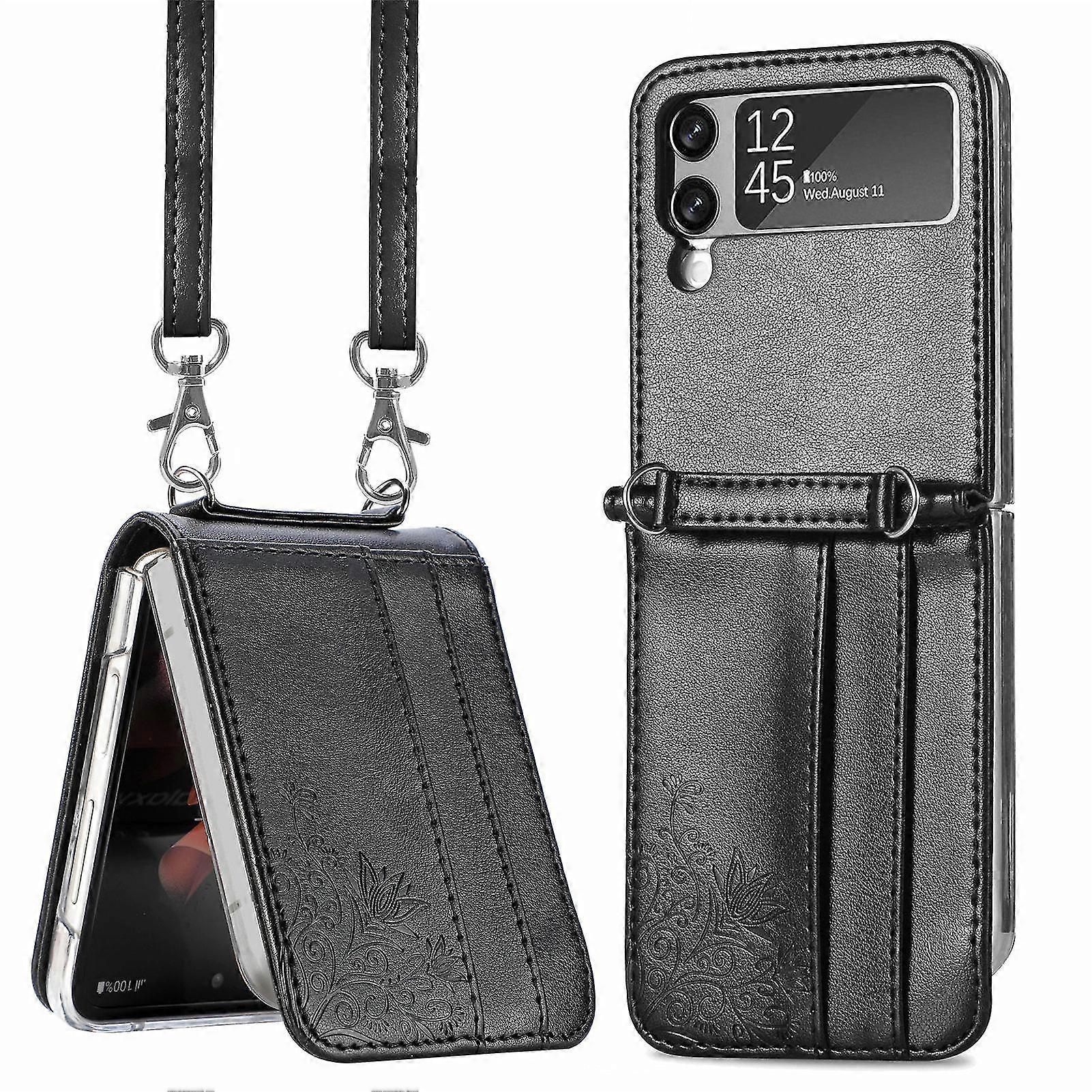 Compatible With Samsung Galaxy Z Flip 3 Case Satchel Style Leather Phone Case-black