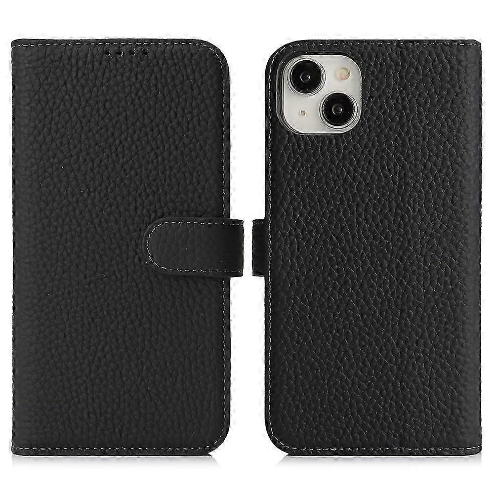 Compatible For iPhone 13 mini Stand Case Litchi Texture Genuine Cow Leather Wallet Phone Cover RFID