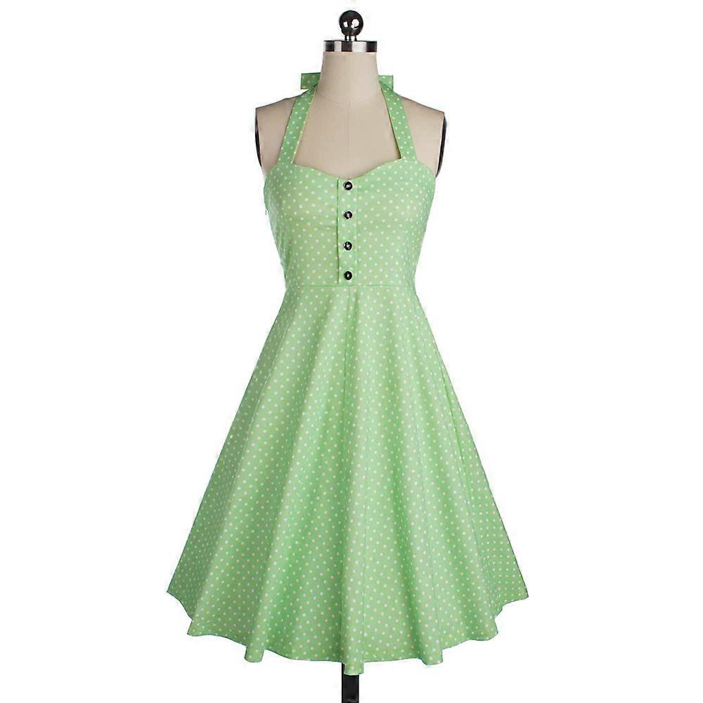 Features: 100% brand new and high qualityVintage styleSoft and comfortable to wearThe best festival giftFashionable polka dot Specifications: Style:Europe and AmericaPattern:polka dotCraft: splicingDesign: haltCombination form: singleSkirt length:middle skirtSkirt shape:big peplumWaist line:middle waistFront fly: pulloverFashionable element:splicing,bowknot, backlessMain material: cottonColor:red,green,black, blueSize:S,M,L,XL, XXLWeight:350g