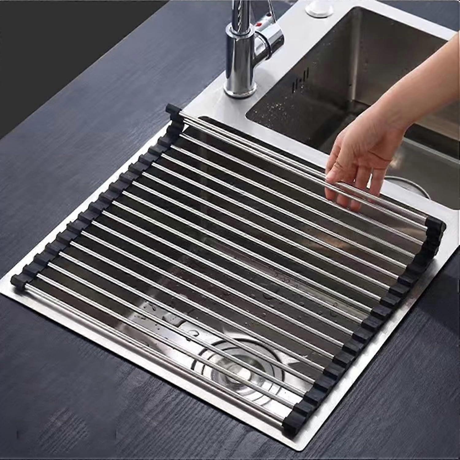 Black Stainless Steel Kitchen Drainer Folding and Removable Stainless Steel Roller Dryer for Sinks 43CM*35CM