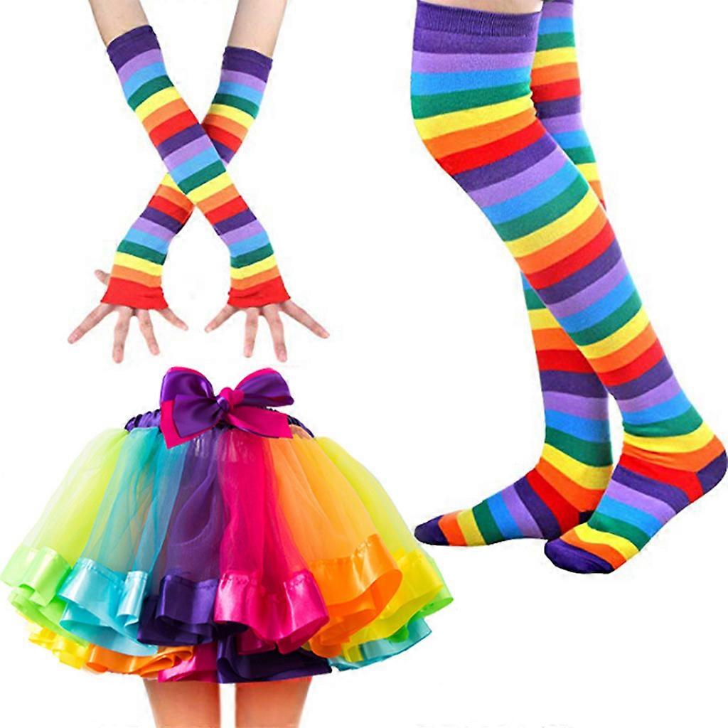 Women Rainbow Costume Sets Girls Long Gloves Socks Stocking and Tulle Skirt 1