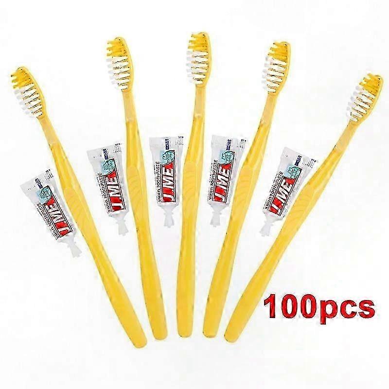 Travel-Friendly Disposable Toothbrush and Toothpaste Kits, 100/50 Sets, Portable Plastic Hygiene Solution for Camping and Hotel Use