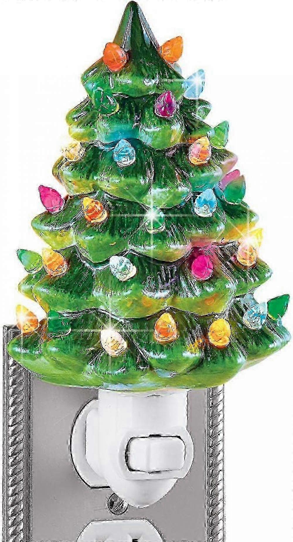 Jusch Collections Etc Ceramic Christmas Tree Night Light - 6" H, Nostalgic, Decorative Bathroom Decoration, Green
