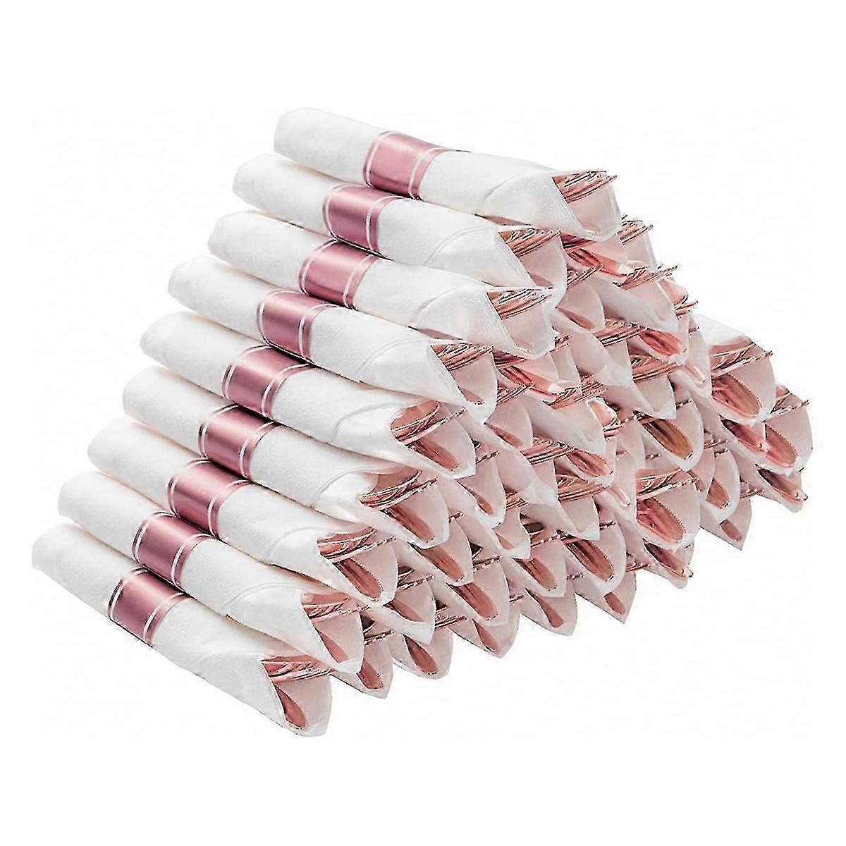 Pre Rolled Silver Plastic Silverware Set,pre Rolled Napkins With Silver Cutlery Set For ,birthday Rose Gold