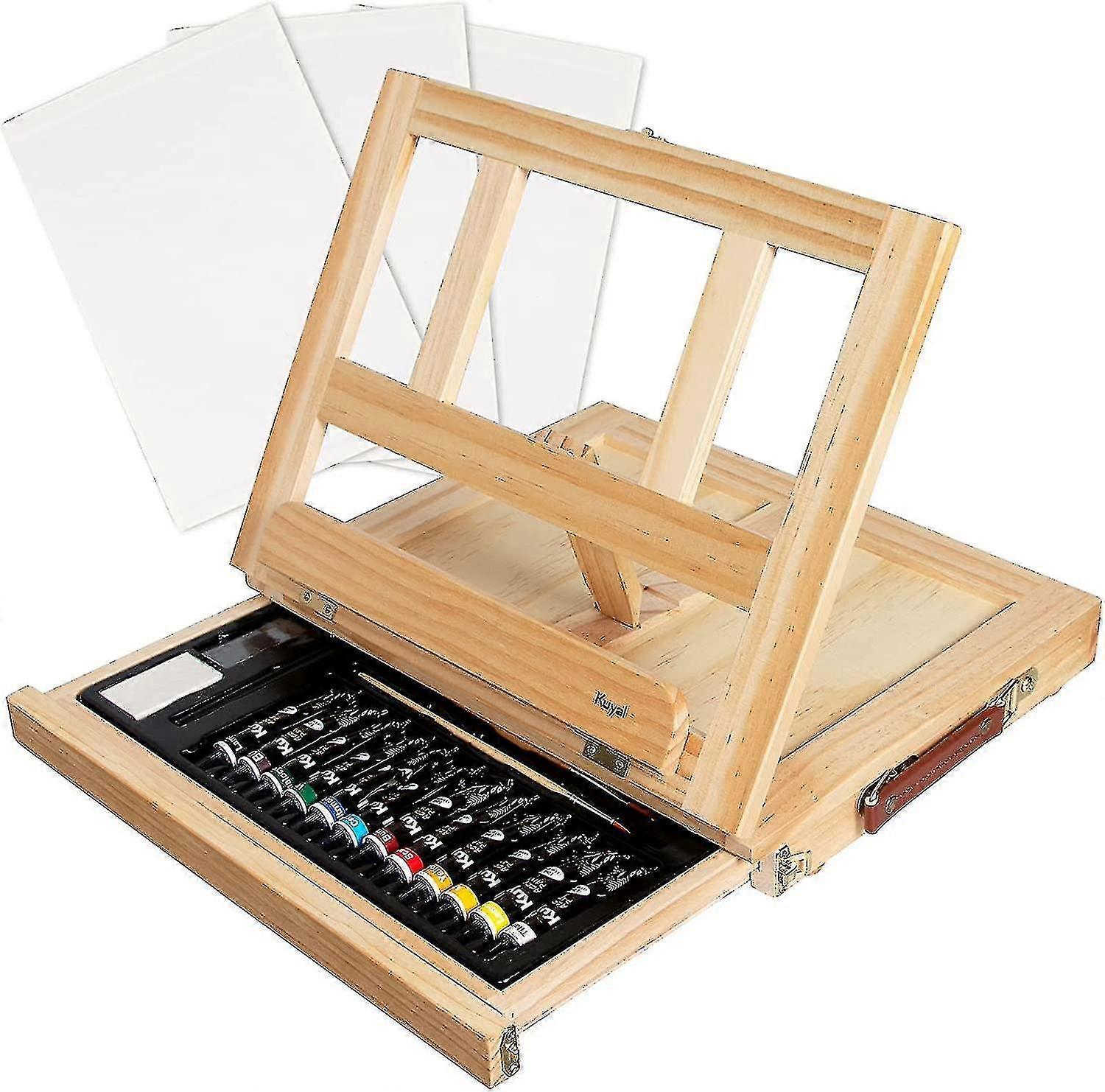Paint Set, 34 Piece Adjustable Tabletop Easel Set, Wooden Art Set Crafts Drawing Painting Kit With Easel And 3 Canvas Boards, 12 Acrylic Paints Etc. P
