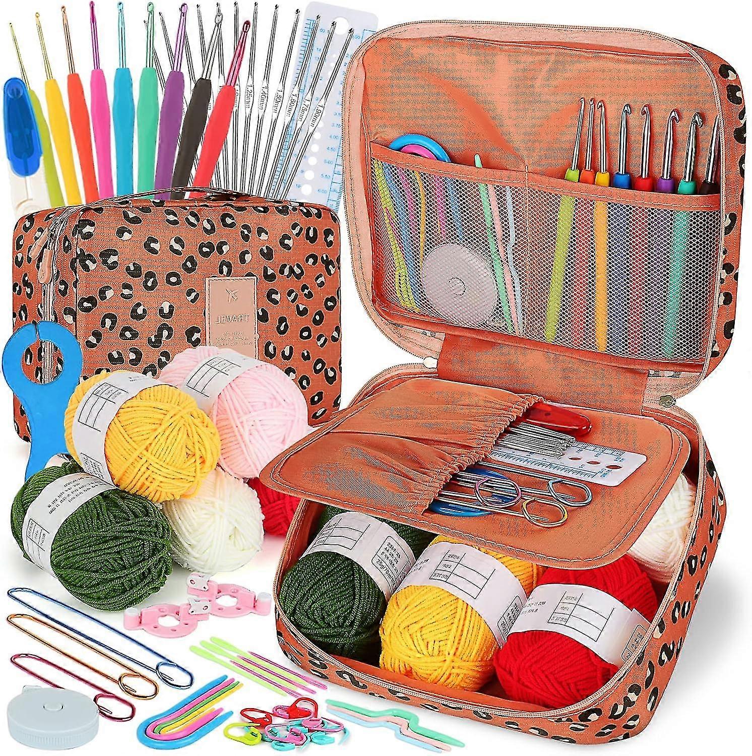 Crochet Kit Beginners Crochet Hook Set with Crochet Yarn,58PCS Portable Crochet Set Ergonomic Crochet Hooks Travel Knitting Crochet Supplies