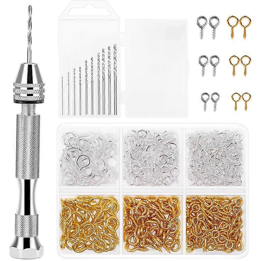 Resin Tools Kit with 1Pcs Pin Vise Hand Drill 10Pcs Drill Bits and 400Pcs Screw Eye Pins for DIY Ke