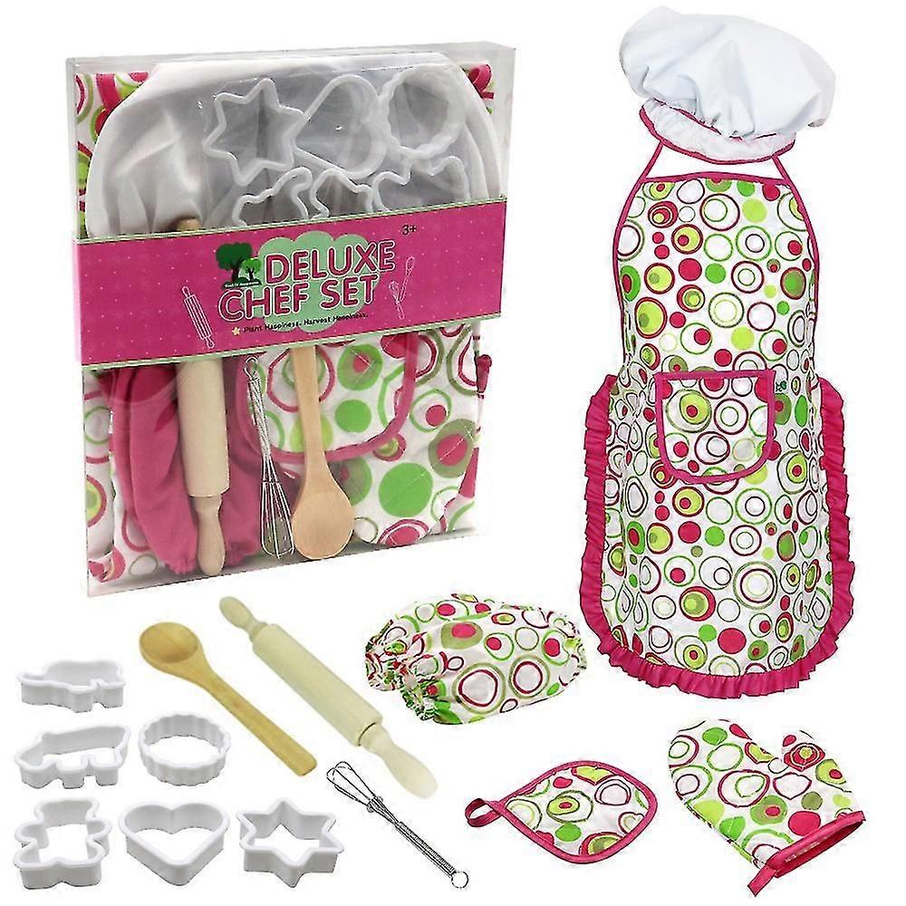 Kids Cooking and Baking Set 15 PCS with Chef Hat Apron Oven Mitt Oversleeves Kitchen Utensils Childr